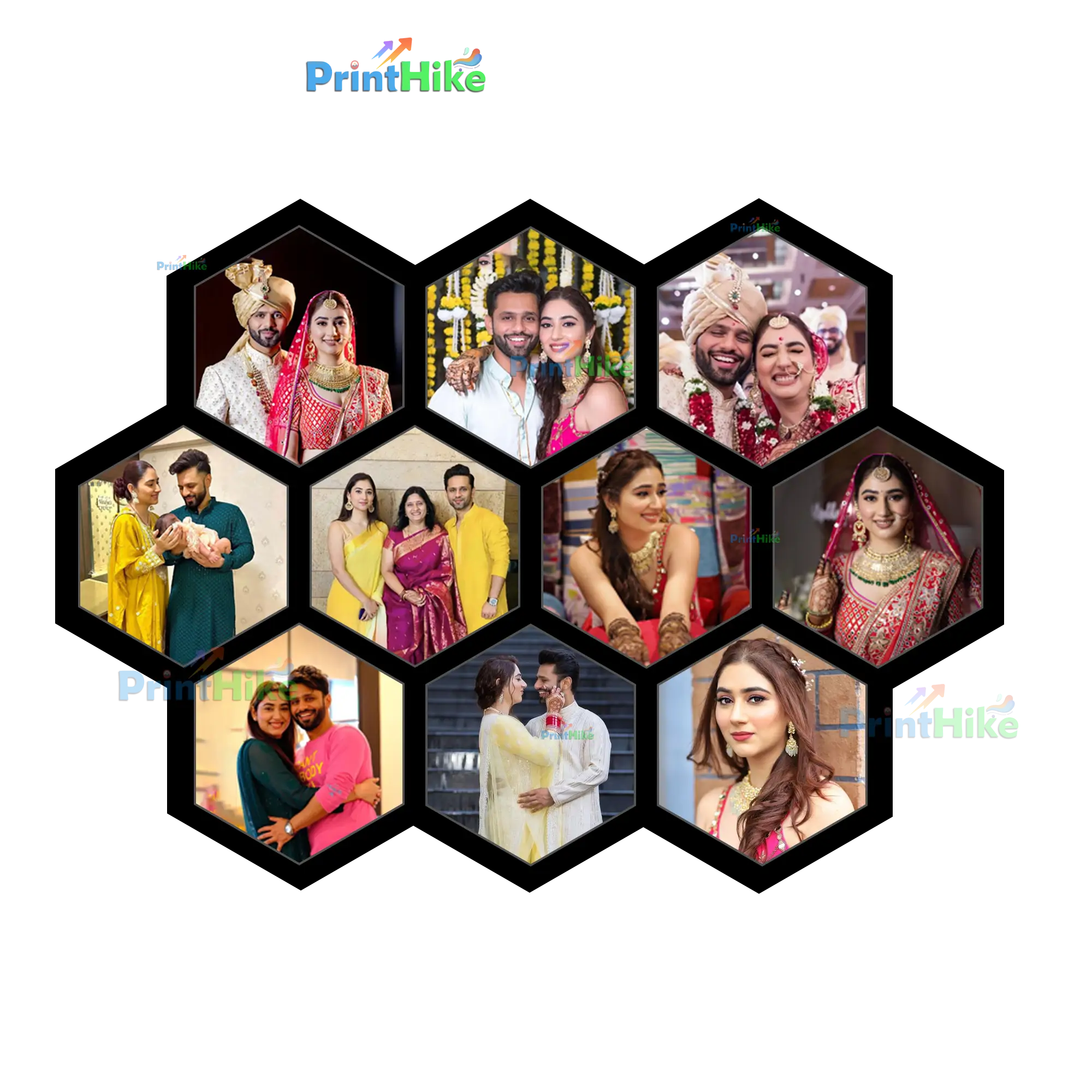Personalized Hexagon Collage: 10 Photos, 12x16 MDF, Gift for Home